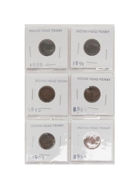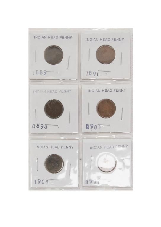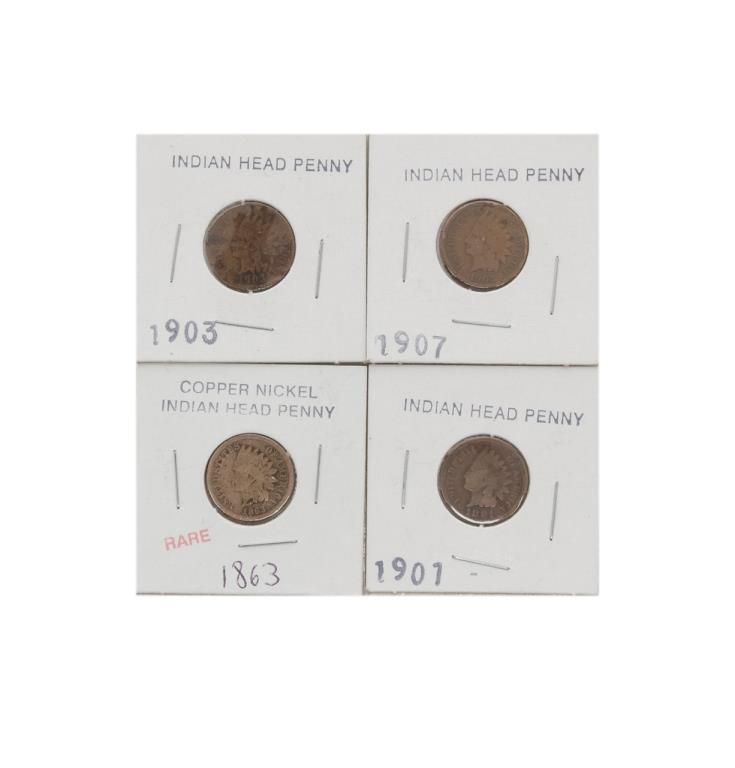 Lot of 28 Indian Head pennies, misc. dates including one rare 1863, all uncleaned and ungraded some showing “red” patina. Est.: $125-$250.