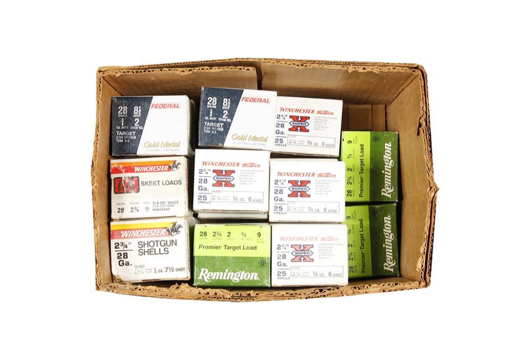 Lot of 28 gauge 2 3/4" Shotgun Ammo Consisting of: 12 full boxes (25 shells) - Win Super X, #6 shot