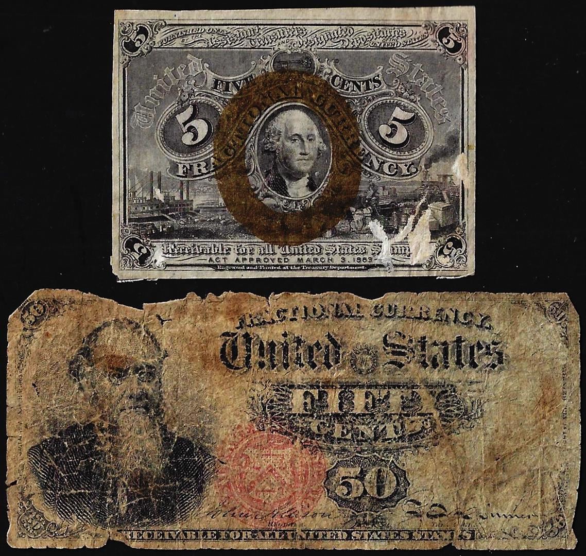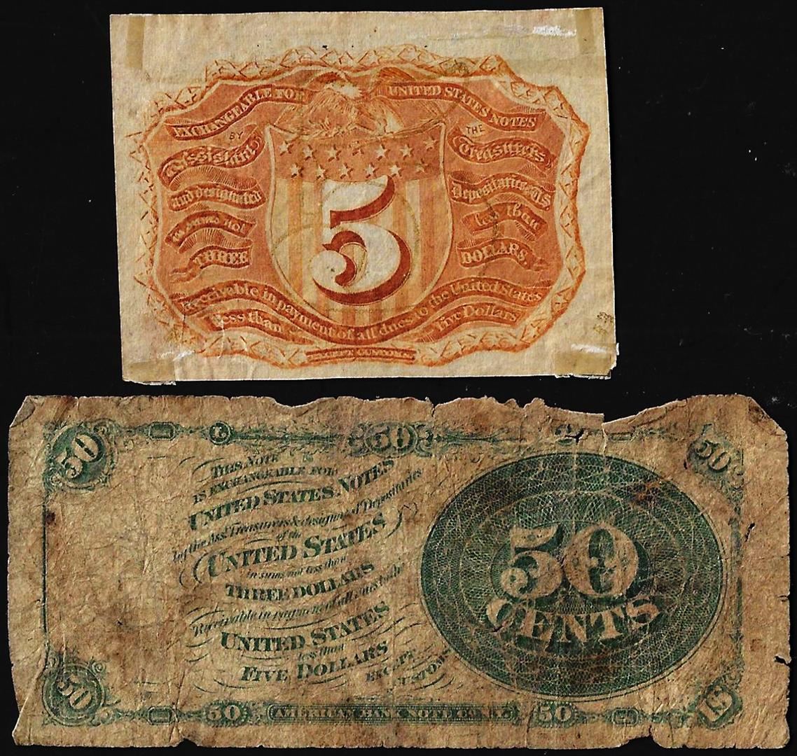 One Lot of 2nd Issue Five Cent & Fourth Issue Fifty Cents Fractional Currency Notes.
