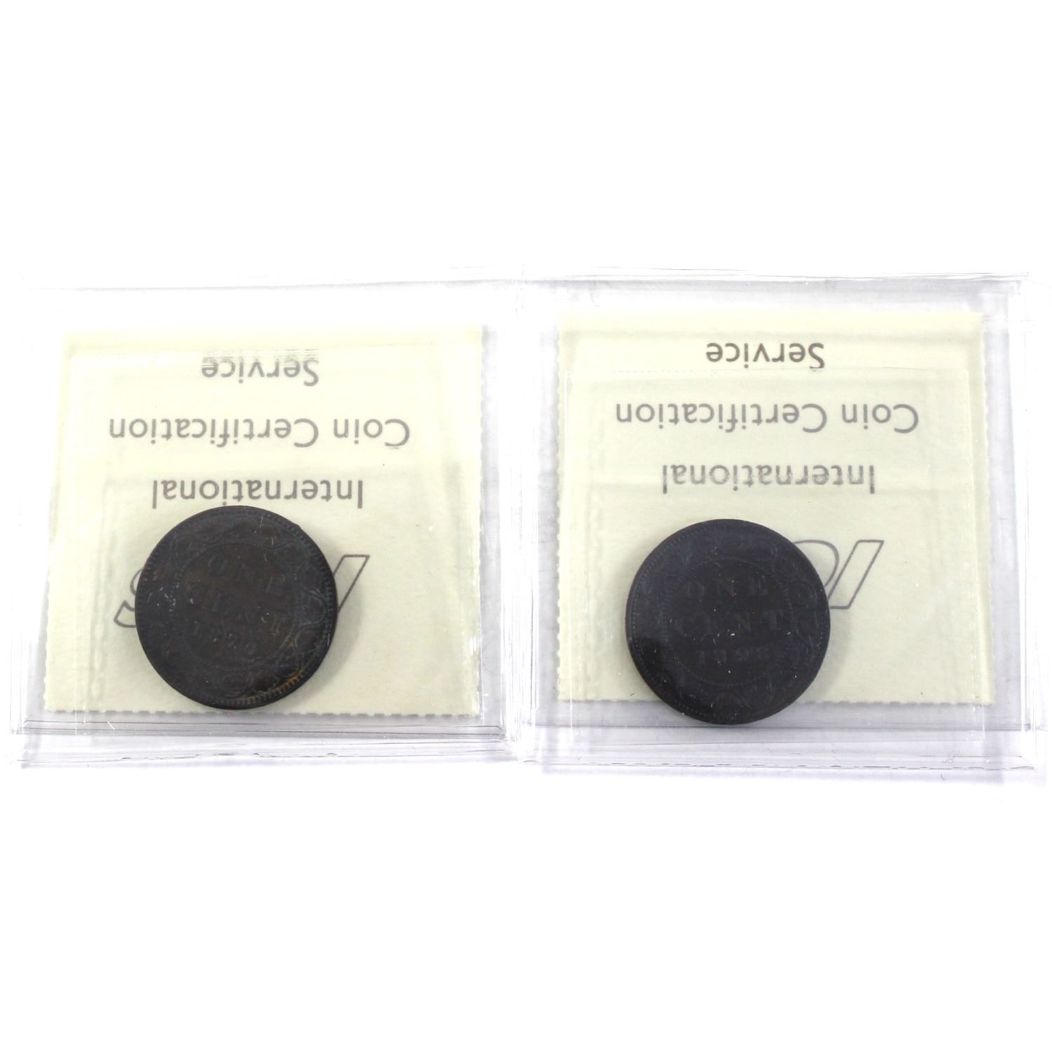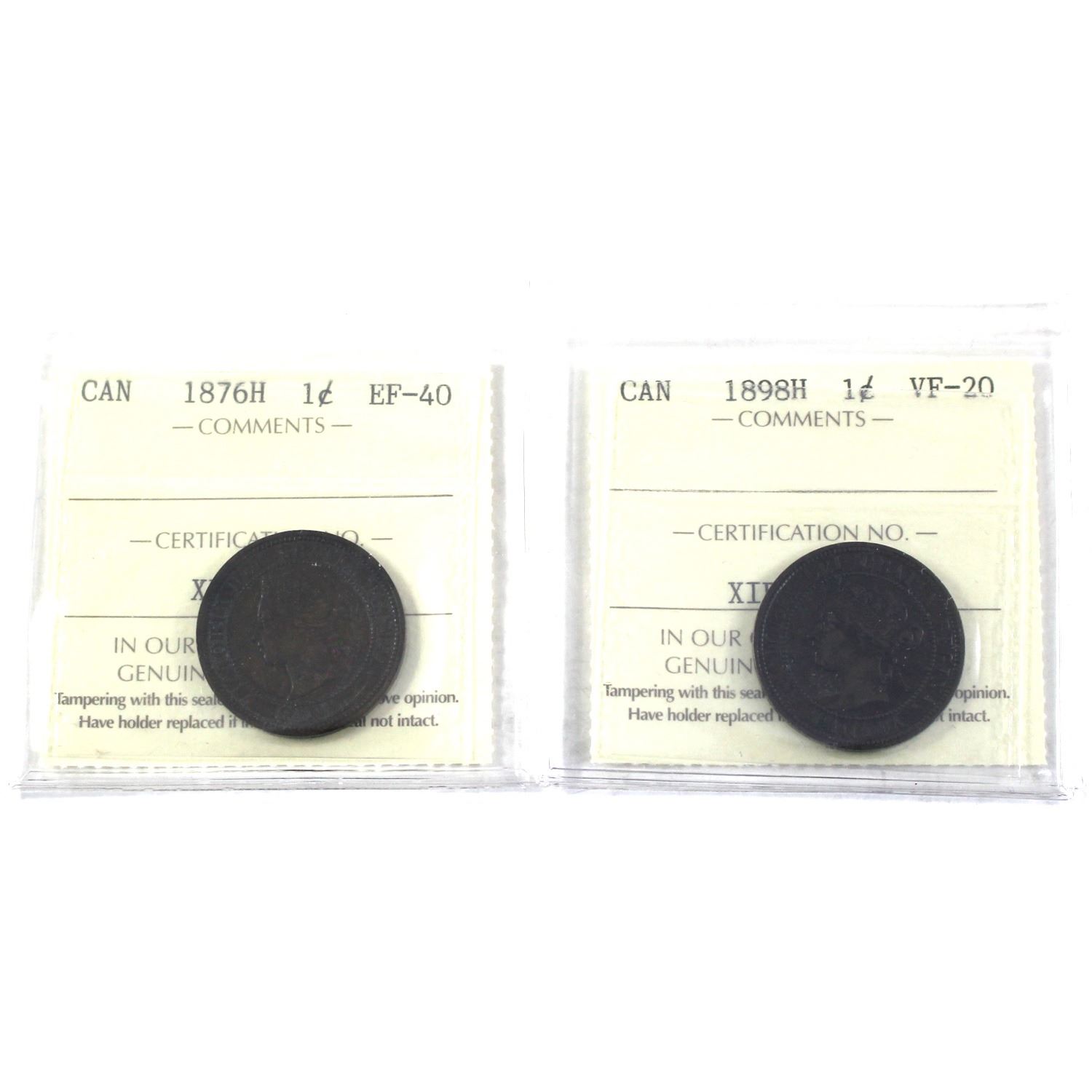 Lot of 2x 1876H-1898H Canada 1-cent ICCS Certified in Very to Extra Fine Condition. Lot Includes: 1876H EF-40; 1898H VF-20. 2pcs.