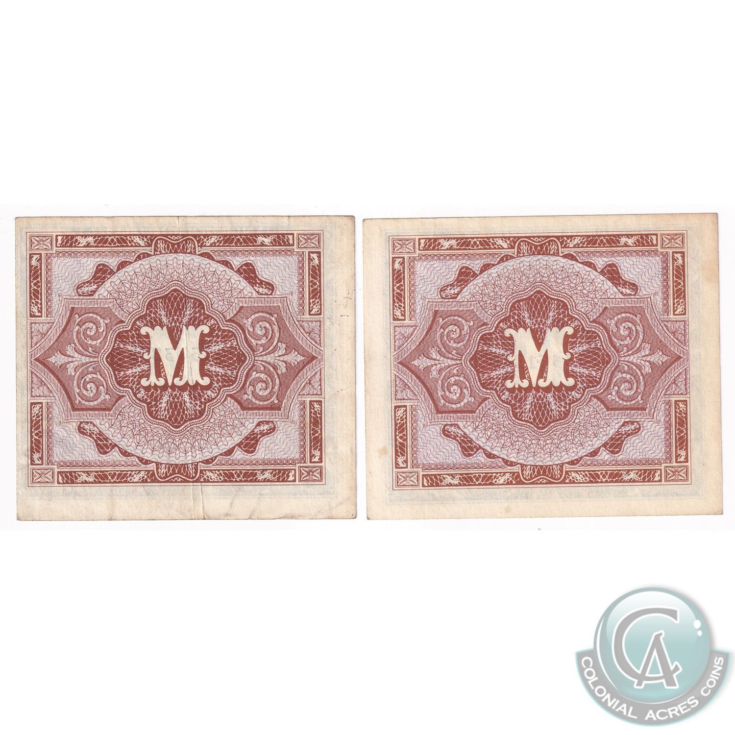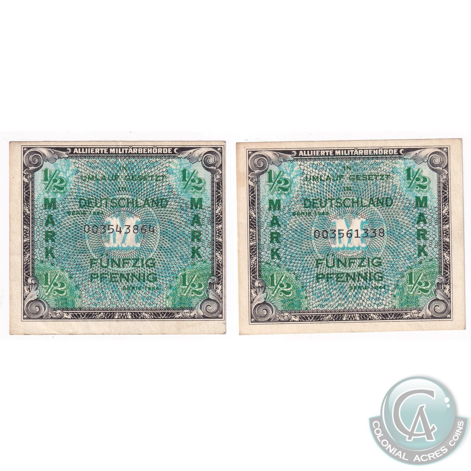 Lot of 2x 1944 Germany Allied Occupation Military 1/2 Mark Notes. 2pcs