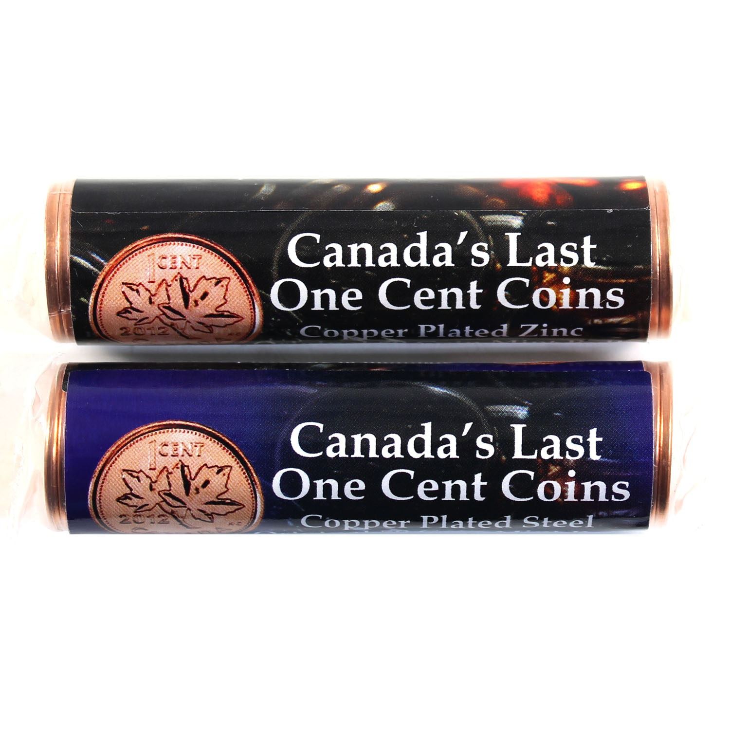Lot of 2x 2012 Canada 1-cent Rolls 1x Magnetic and 1x Non-Magnetic in custom wrapper. Last Year Issue! (2 Rolls)