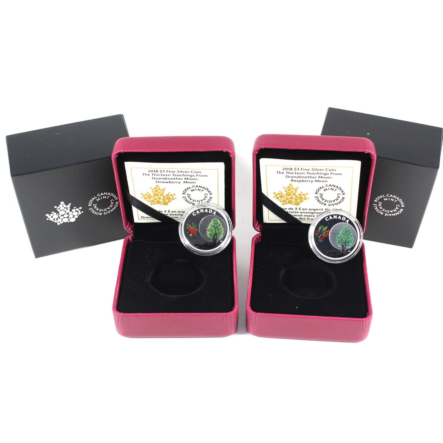 Lot of 2x 2018 Canada $3 Thirteen Teachings From Grandmother Moon Series. Includes Raspberry Moon and Strawberry Moon. Comes with all original packaging!