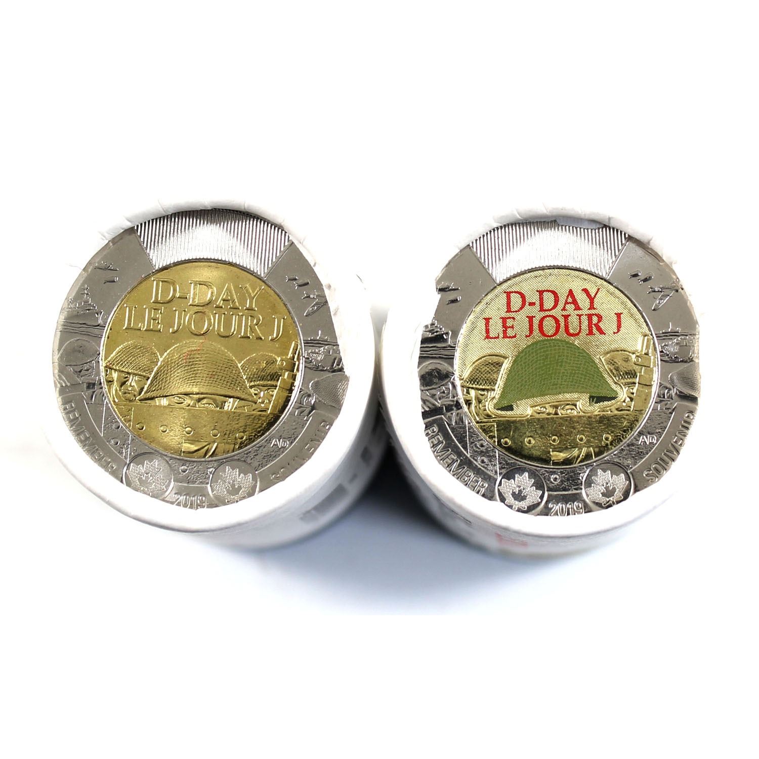 Lot of 2x 2019 D-Day $2 Special Wrap Rolls 1x Coloured, and 1x Non-Coloured. 2 Rolls
