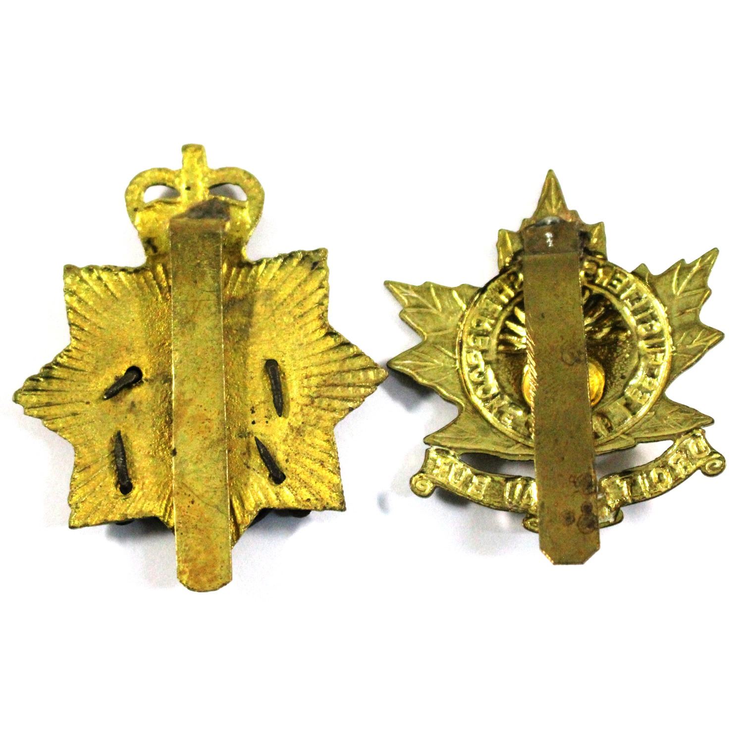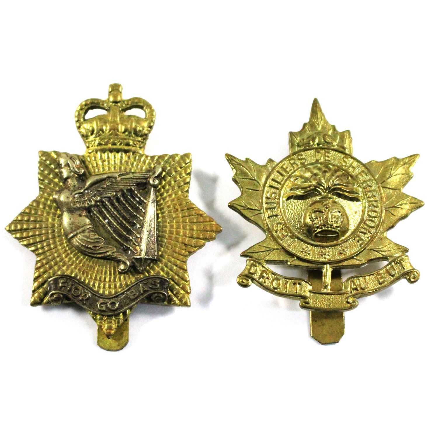 Lot of 2x Canadian Armed Forces Cap Badges. Includes Sherbrooke Army Regiment Badge, and The Irish Regiment of Canada Badge.