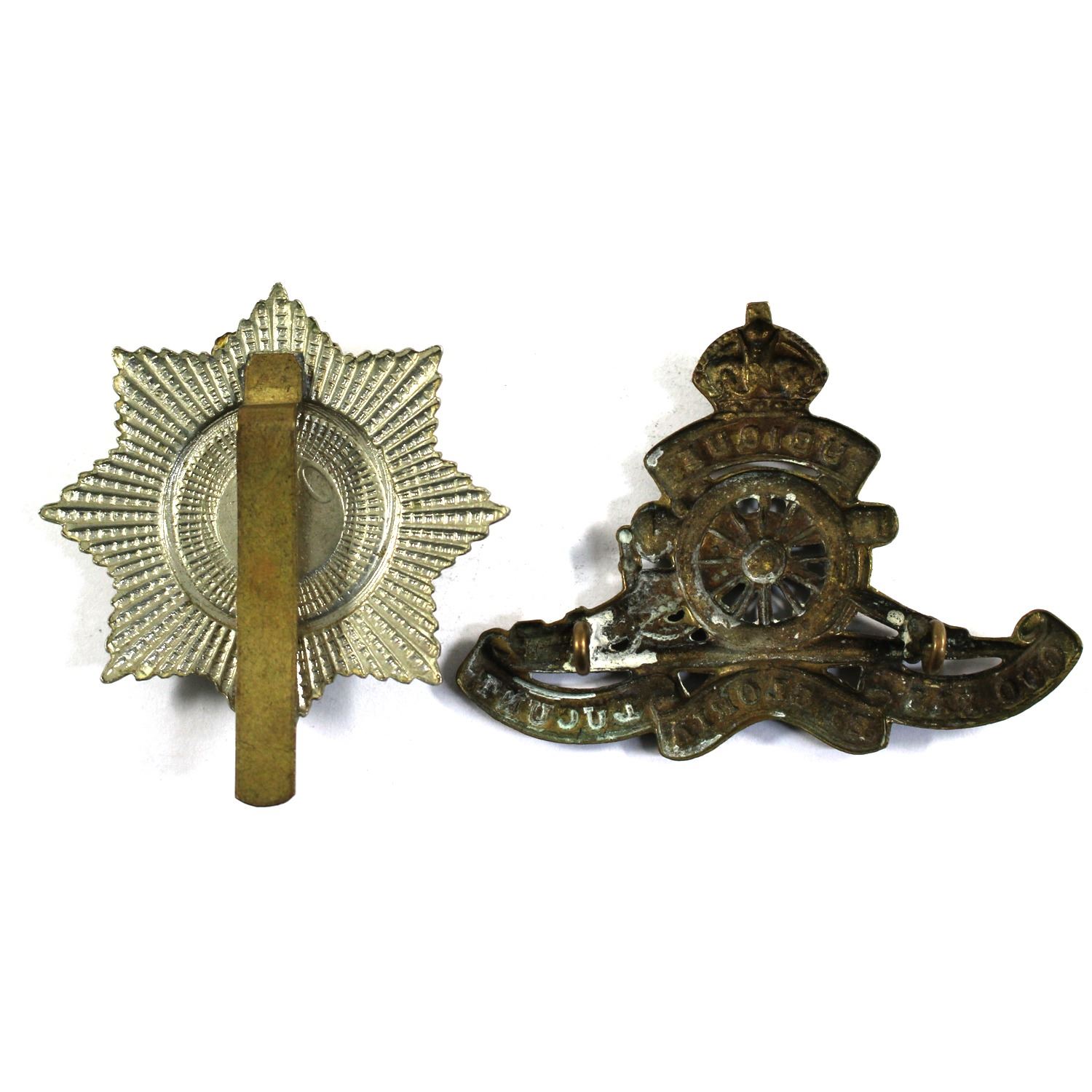 Lot of 2x Canadian Armed Forces Cap Badges. Includes The Royal Canadian Regiment VRI Badge, and the Royal Canadian Artillery Cap Badge. Both items are in good shape! Great for display.