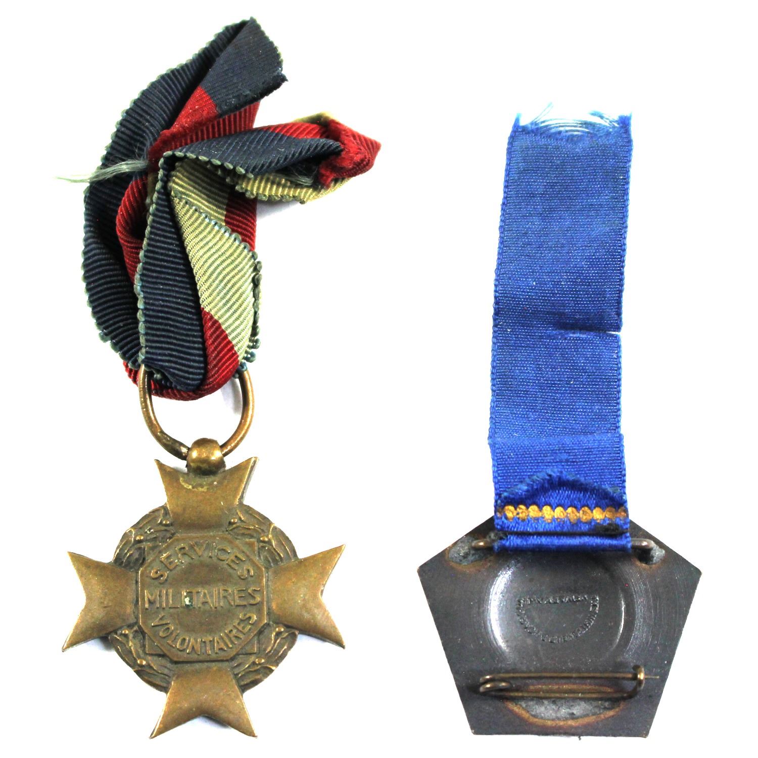 Lot of 2x International Medals. Includes WWII France Voluntary Military Service Medal with ribbon, and Michigan to Toronto Aug 8-14 1925 Holy Bible Seasons Star. Items are showing some age.