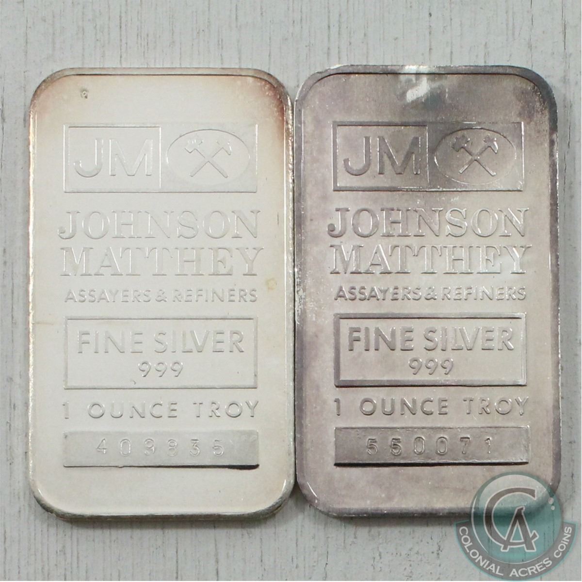 Lot of 2x Johnson Matthey 1oz .999 Fine Silver Bars (Tax Exempt) 2pcs