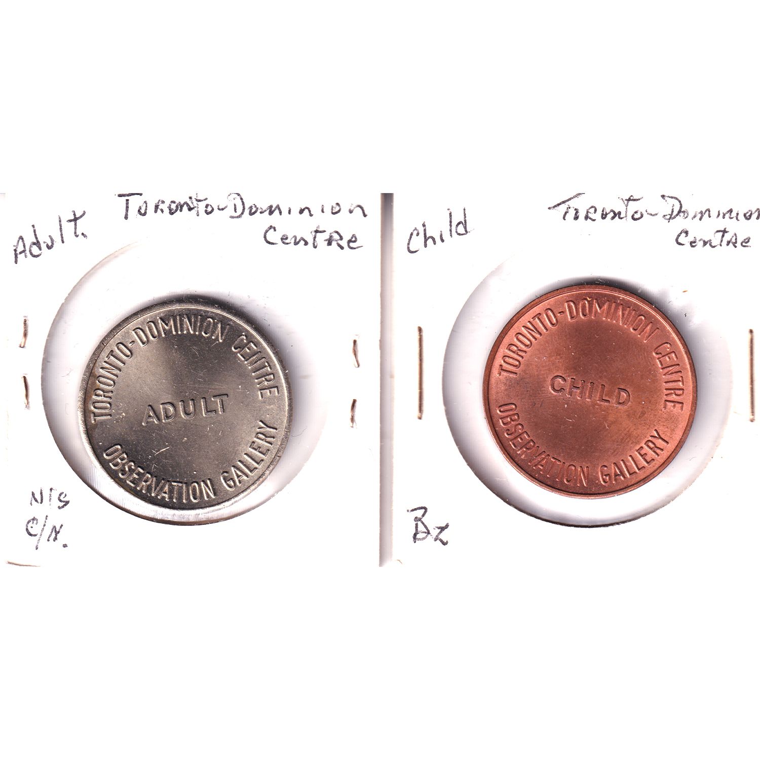 Lot of 2x ND Toronto Dominion Centre Observation Gallery Tokens. Includes: Child, & Adult. 2pcs.