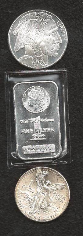 Morgan design bar being pure silver, 1 oz silver onza, 1 oz silver bufflalo