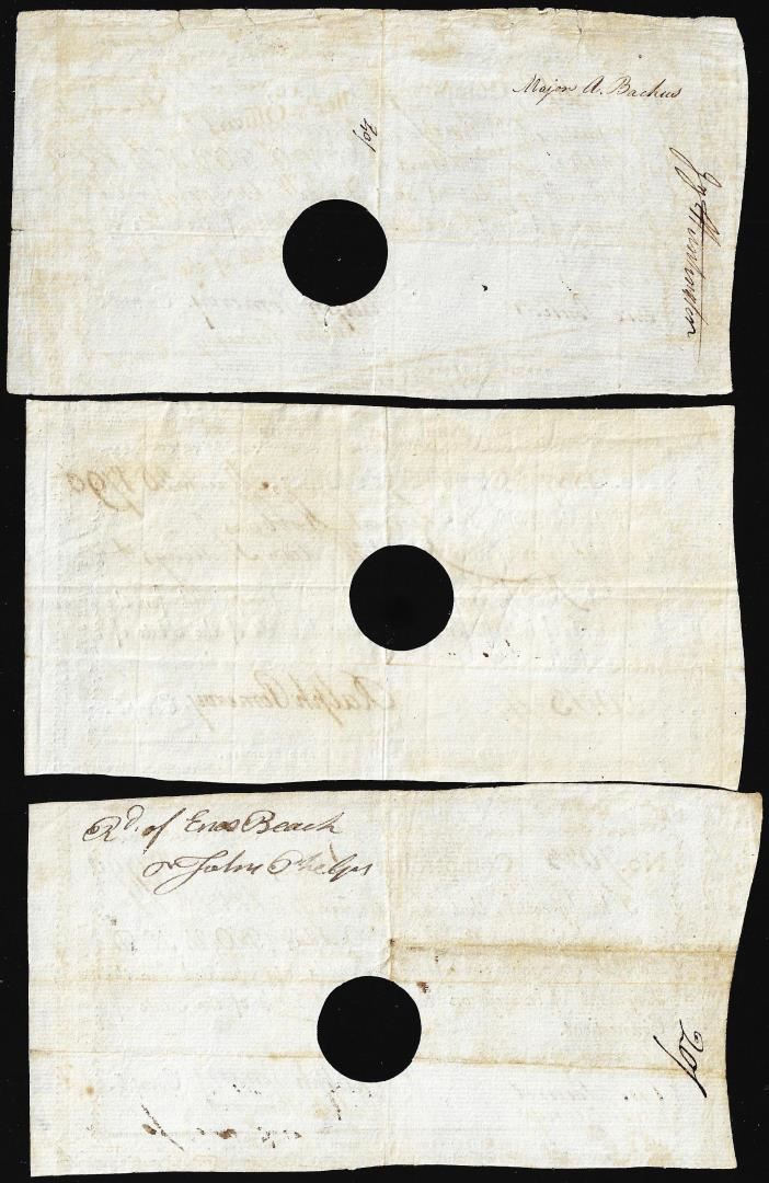 One Lot of (3) 1790 Connecticut Comptrollers Office Colonial Currency Notes Cut Canceled.