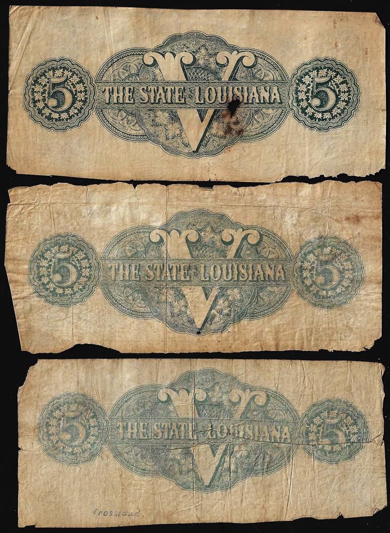 Lot of (3) 1863 $5 The State of Louisiana Baton Rouge, LA Obsolete Banknotes