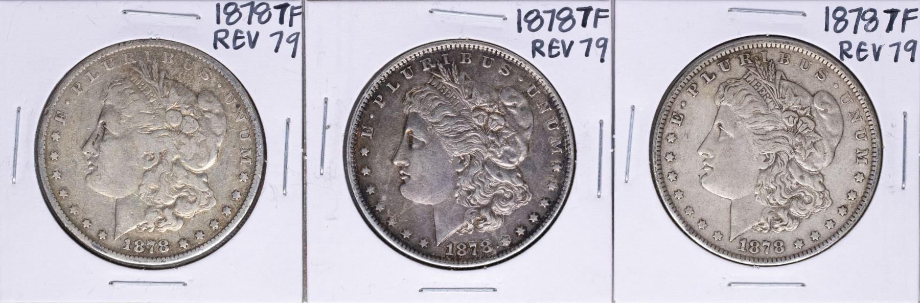 Lot of (3) 1878 7TF Reverse of 79' $1 Morgan Silver Dollar Coins