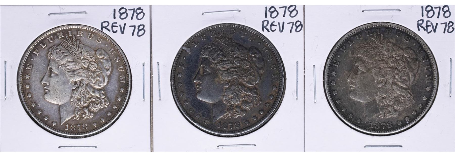 One Lot of (3) 1878 Reverse of 78' $1 Morgan Silver Dollar Coins.