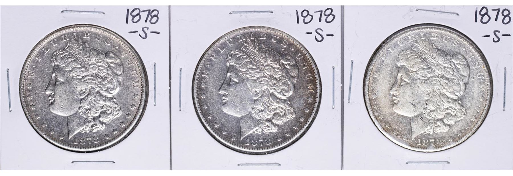 One Lot of (3) 1878-S $1 Morgan Silver Dollar Coins.