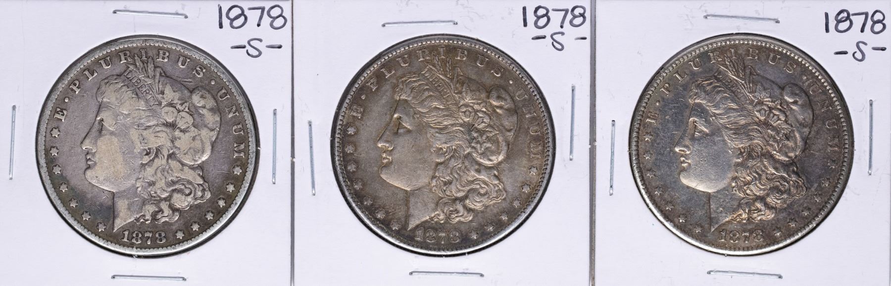 One Lot of (3) 1878-S $1 Morgan Silver Dollar Coins.