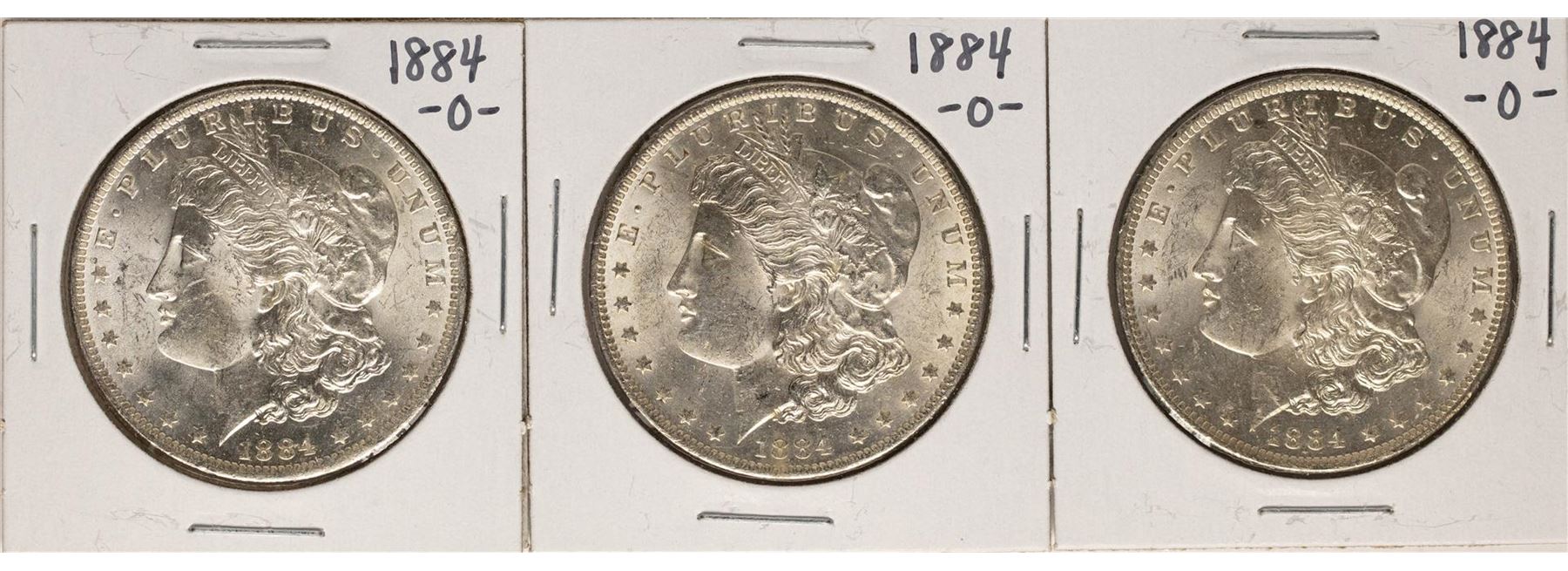 One Lot of (3) 1884-O $1 Morgan Silver Dollar Coins.