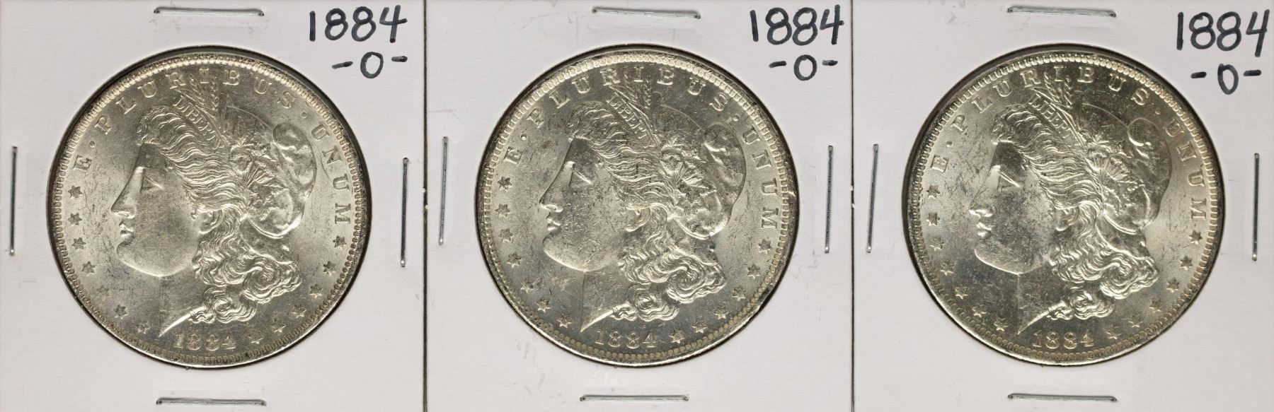 One Lot of (3) 1884-O $1 Morgan Silver Dollar Coins.