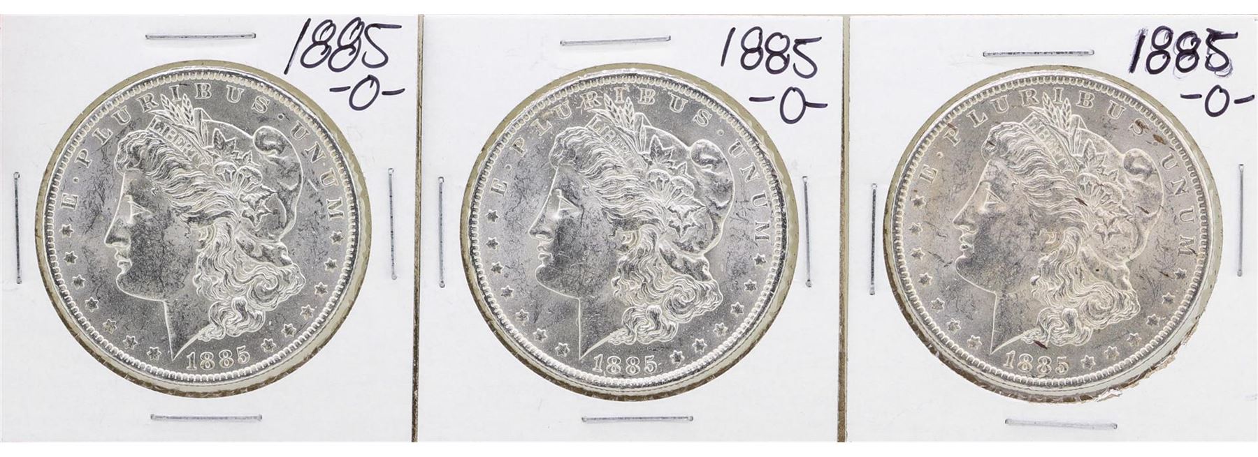 One Lot of (3) 1885-O $1 Morgan Silver Dollar Coins.