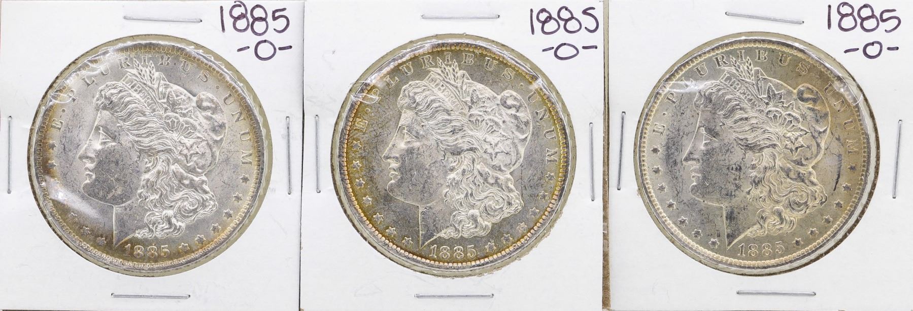 One Lot of (3) 1885-O $1 Morgan Silver Dollar Coins.