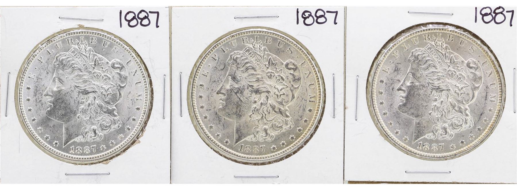 One Lot of (3) 1887 $1 Morgan Silver Dollar Coins.
