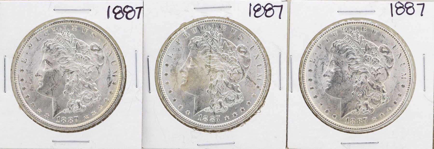 One Lot of (3) 1887 $1 Morgan Silver Dollar Coins.