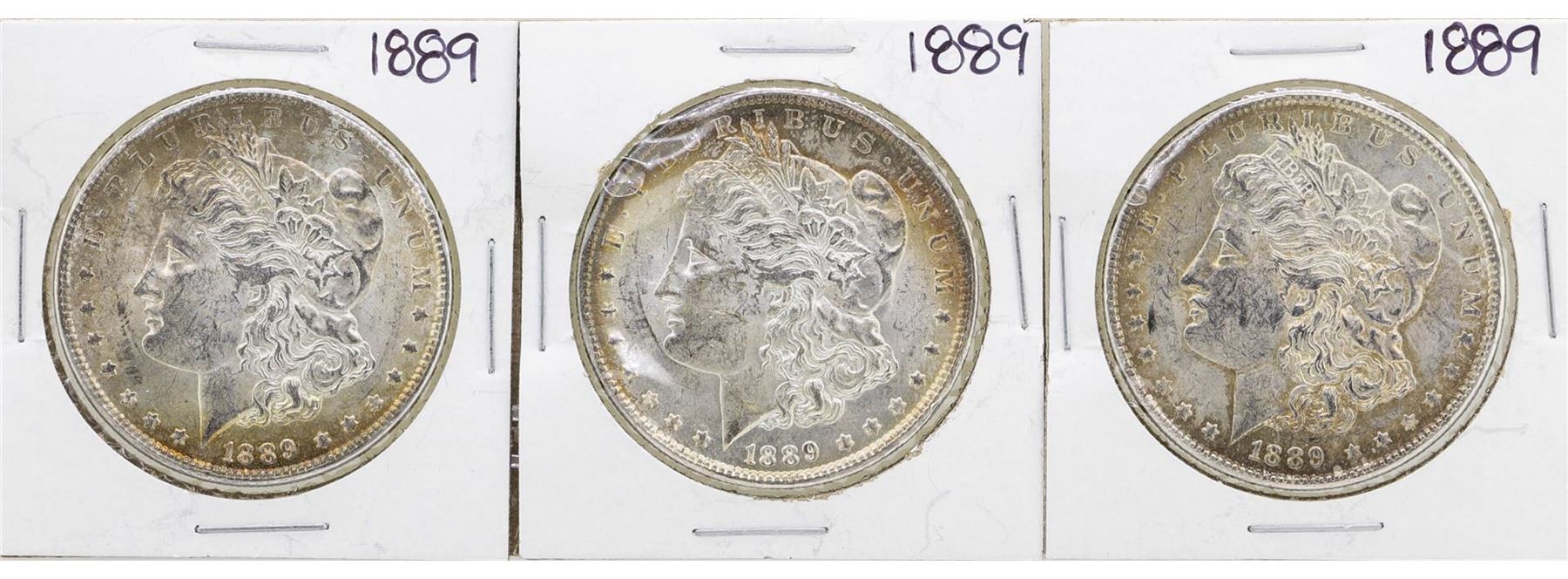 One Lot of (3) 1889 $1 Morgan Silver Dollar Coins.