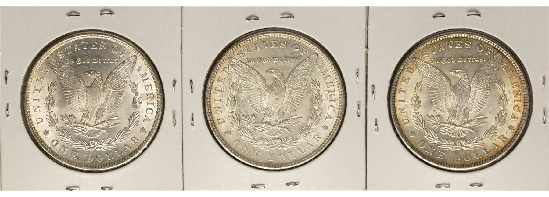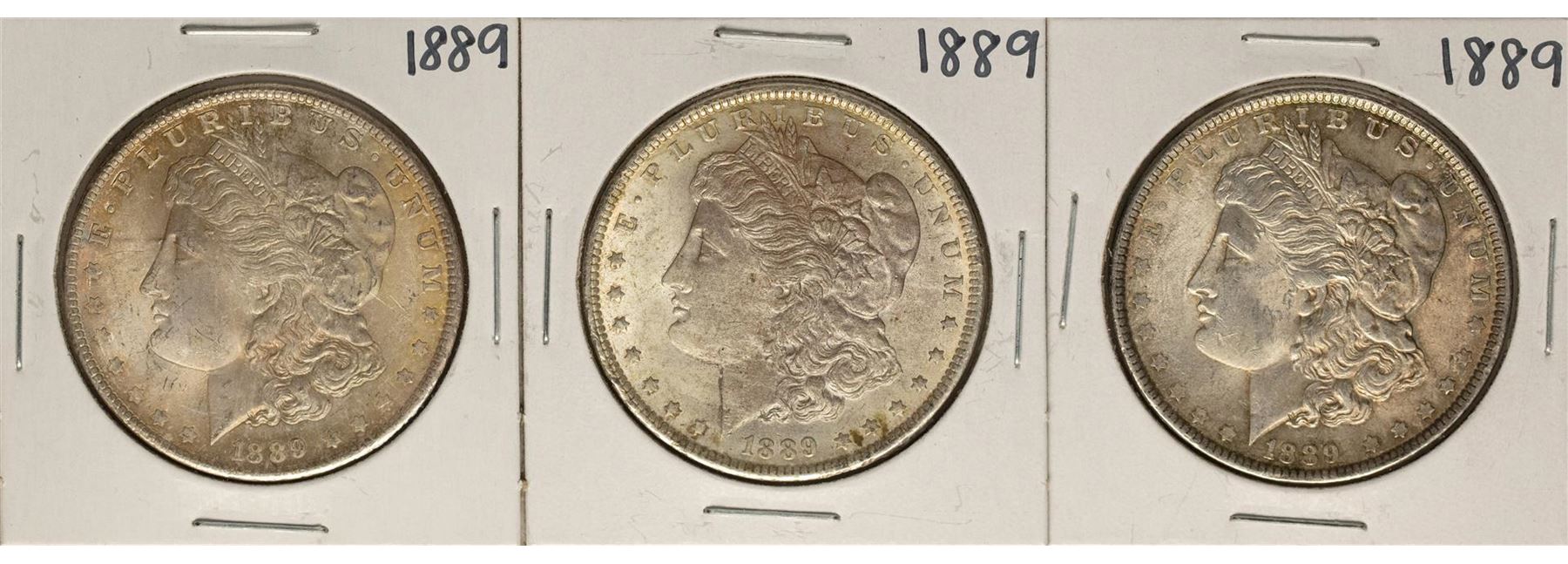 One Lot of (3) 1889 $1 Morgan Silver Dollar Coins.