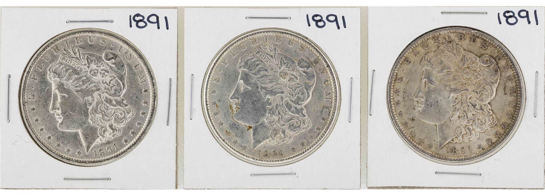 One Lot of (3) 1891 $1 Morgan Silver Dollar Coins.