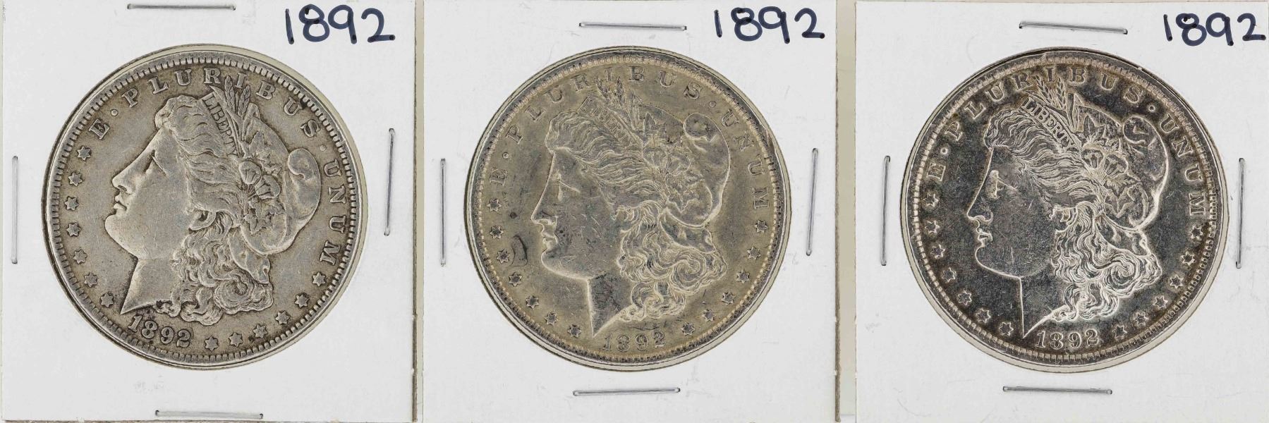 One Lot of (3) 1892 $1 Morgan Silver Dollar Coins.