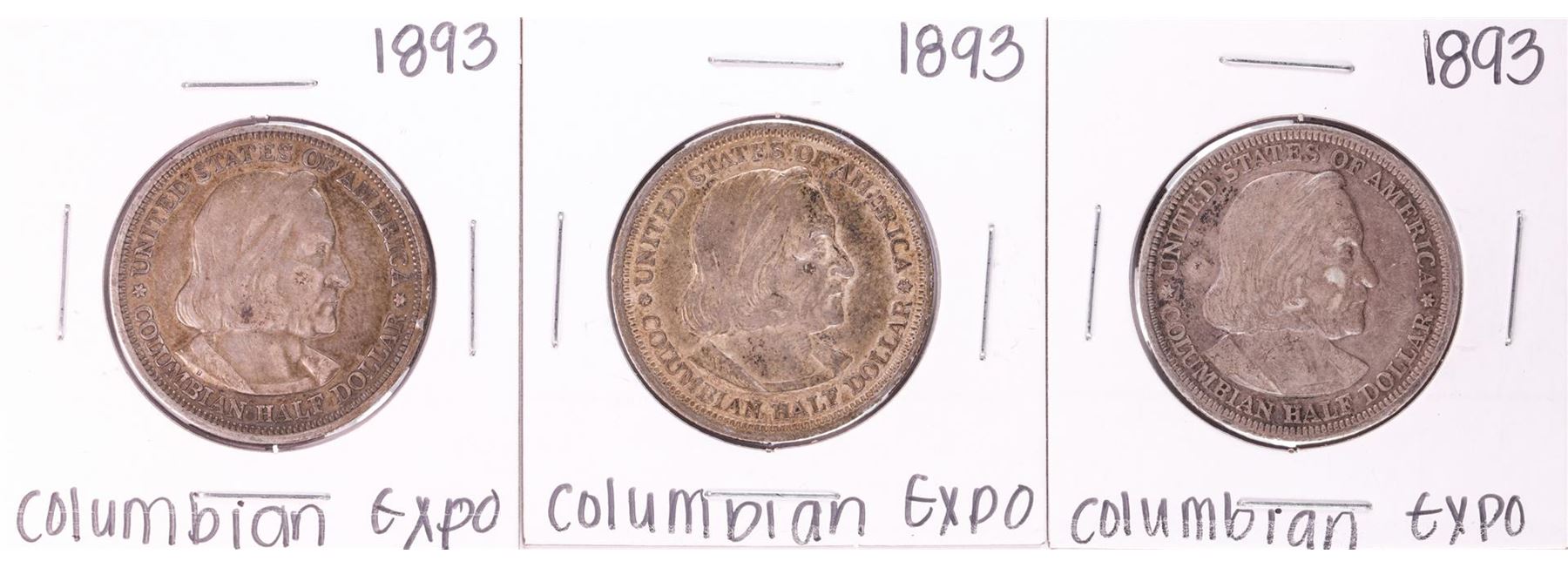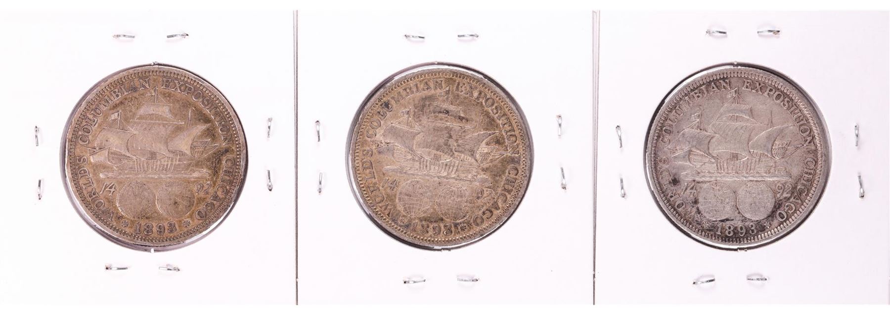 Lot of (3) 1893 Columbian Expo Commemorative Half Dollar Coins