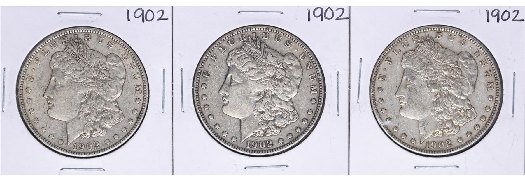 One Lot of (3) 1902 $1 Morgan Silver Dollar Coins.