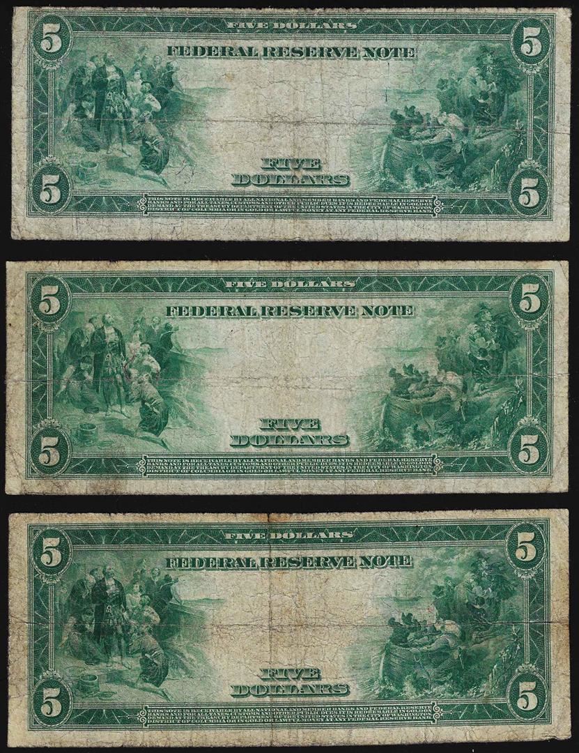 One Lot of (3) 1914 $5 Federal Reserve Blue Seal Notes.