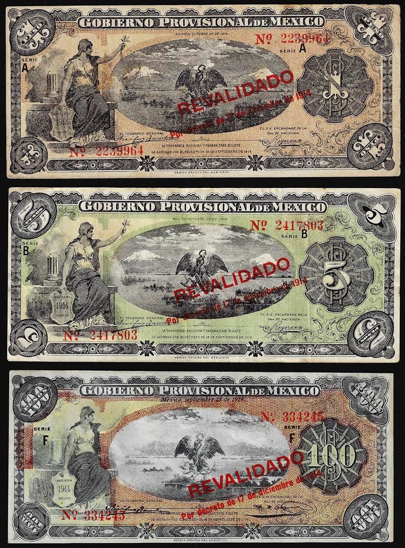 Lot of (3) 1914 Gobierno Provisional De Mexico Revolution Notes
