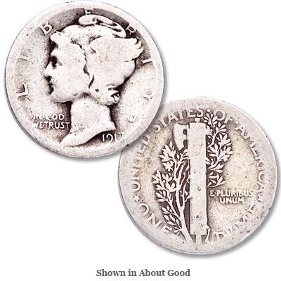 A lot of circulated coins- 1917-20 Mercury head Dimes. Date range mix.