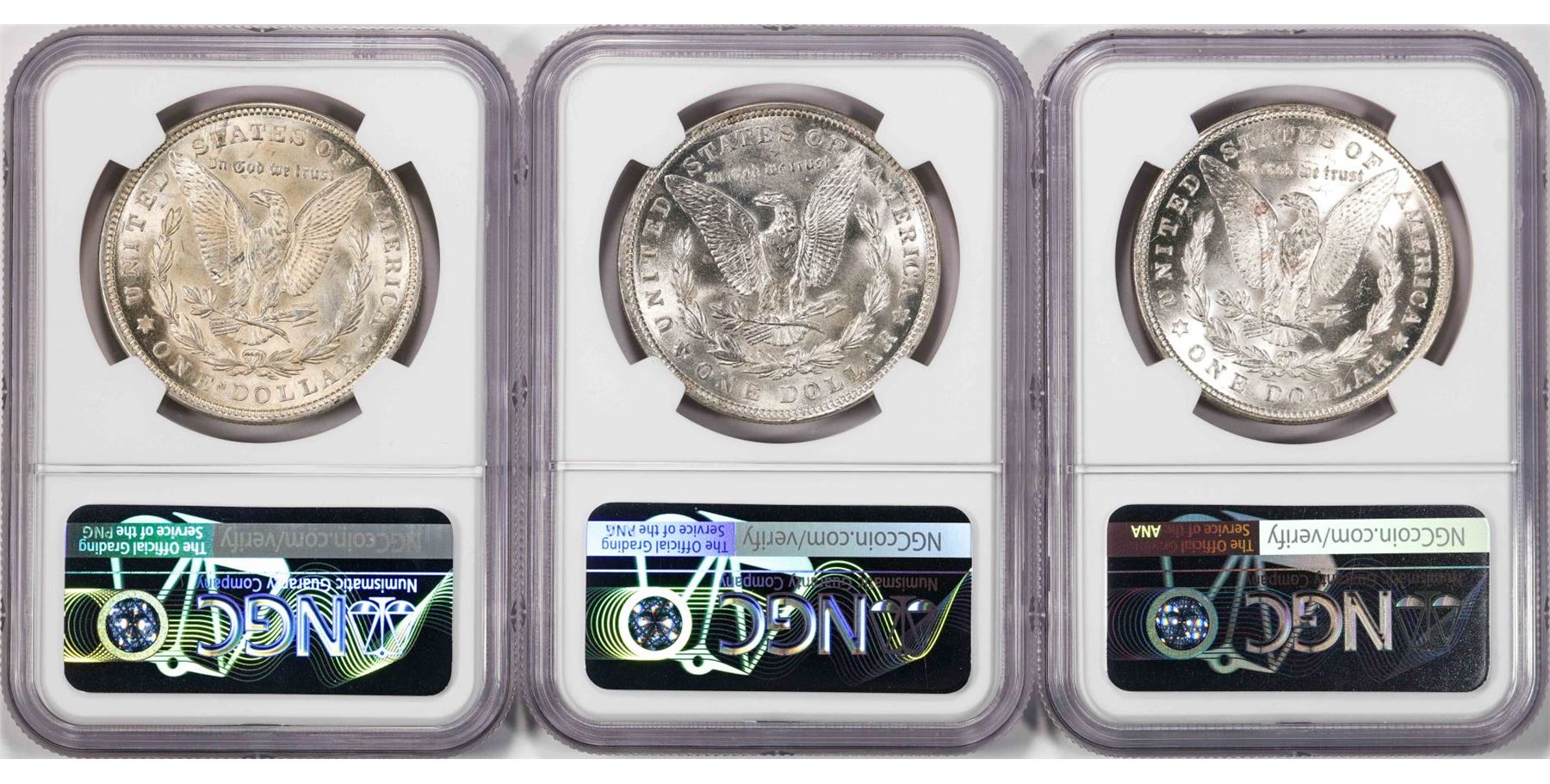 One Lot of (3) 1921 $1 Morgan Silver Dollar Coins NGC MS63. NGC Certified.