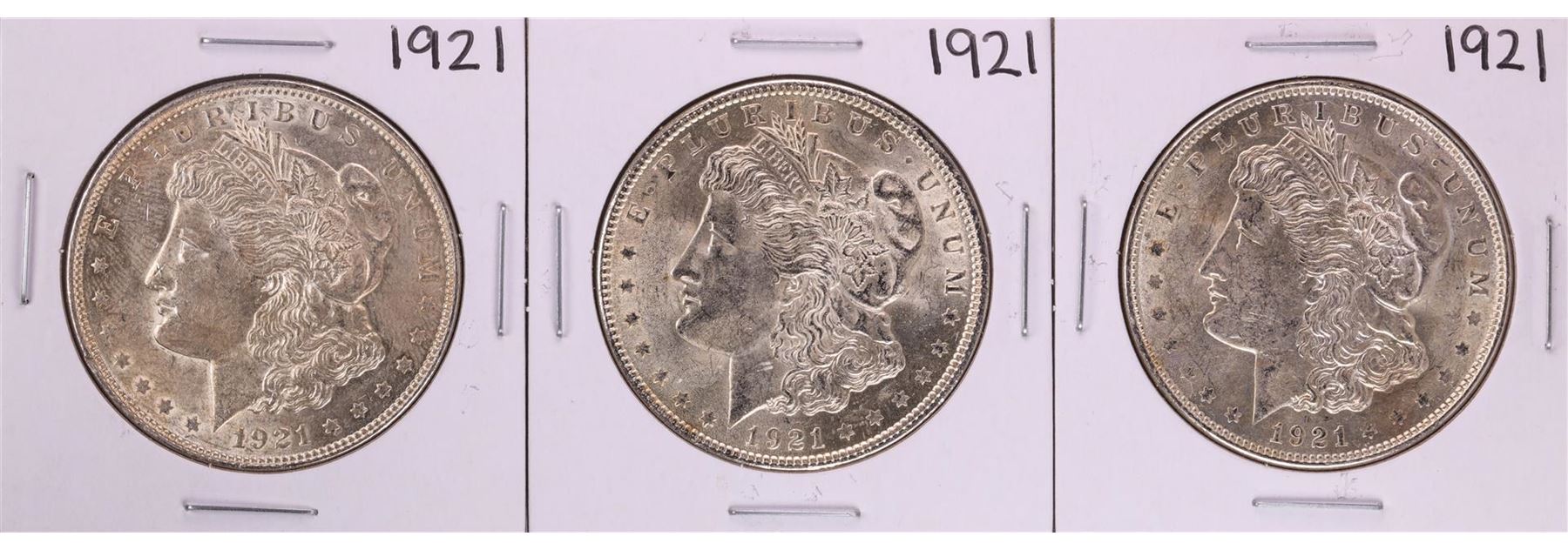 One Lot of (3) 1921 $1 Morgan Silver Dollar Coins.