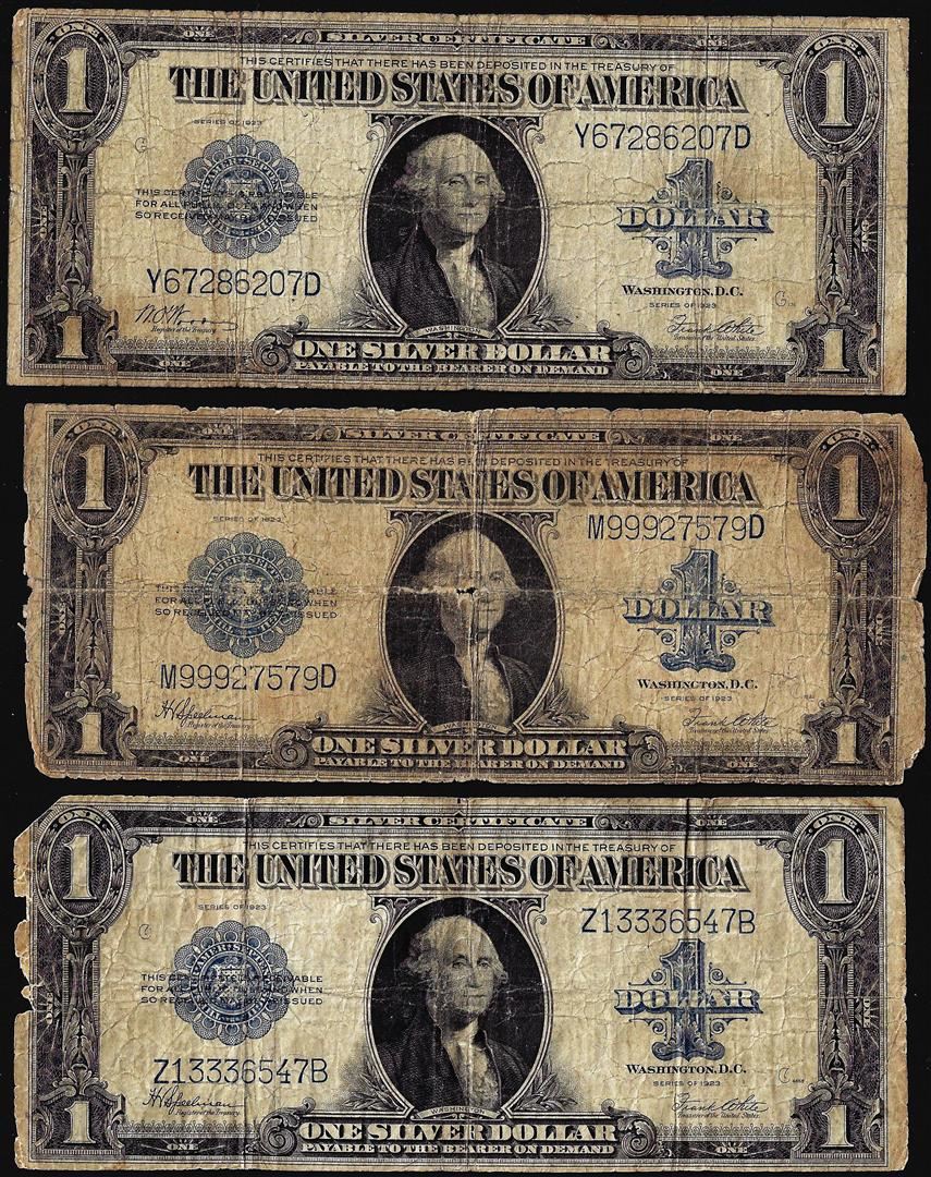 One Lot of (3) 1923 $1 Silver Certificate Notes.