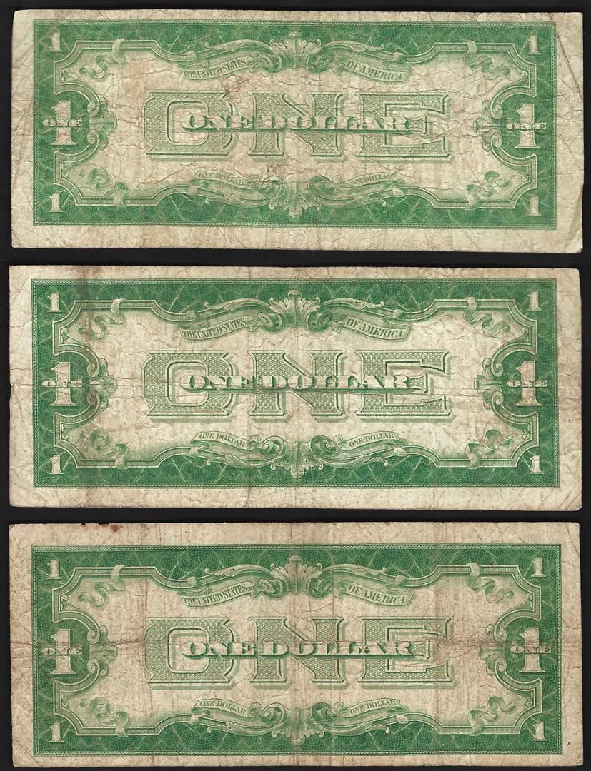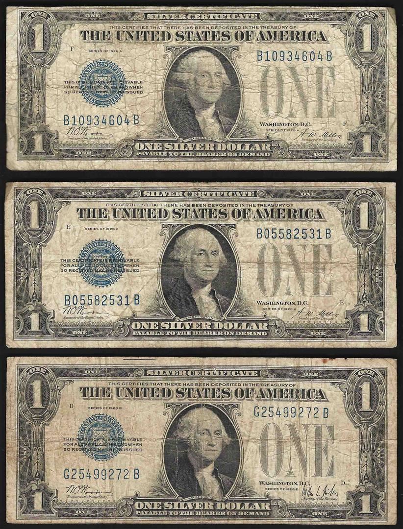 One Lot of (3) 1928 $1 Funnyback Silver Certificate Notes.
