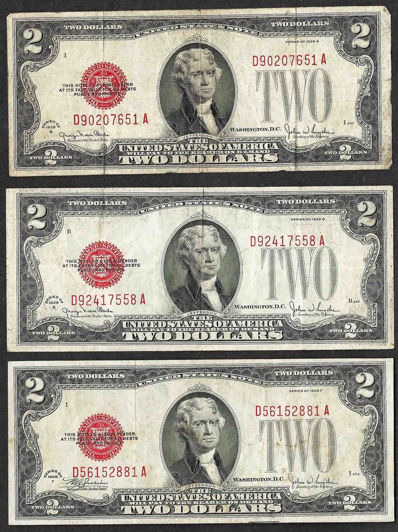 One Lot of (3) 1928 $2 Legal Tender Notes.