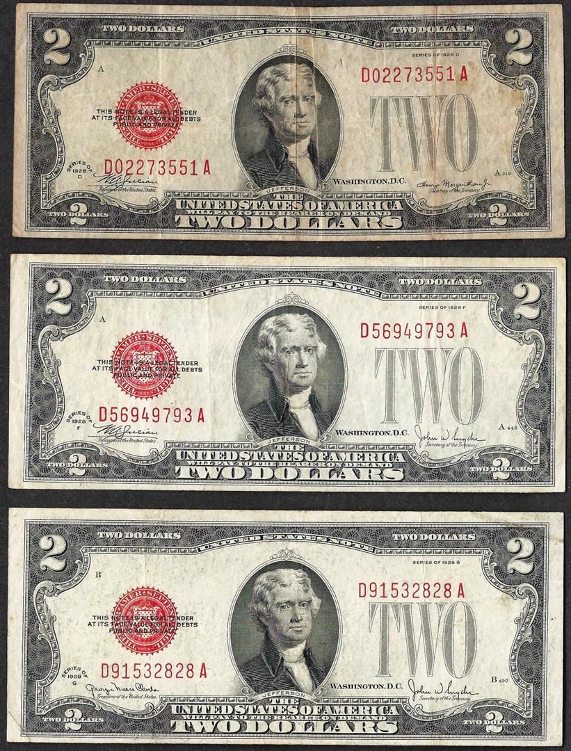 One Lot of (3) 1928 $2 Legal Tender Notes.