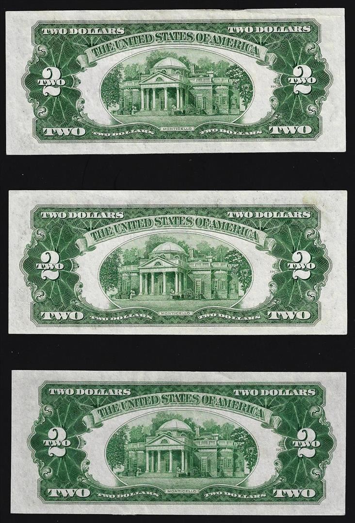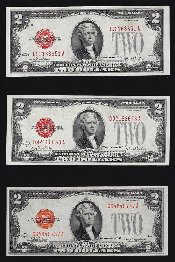 One Lot of (3) 1928 $2 Red Seal Legal Tender Note.