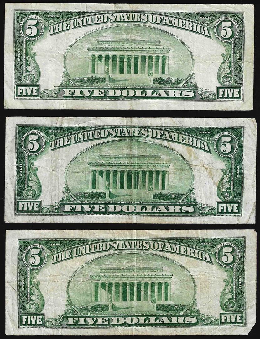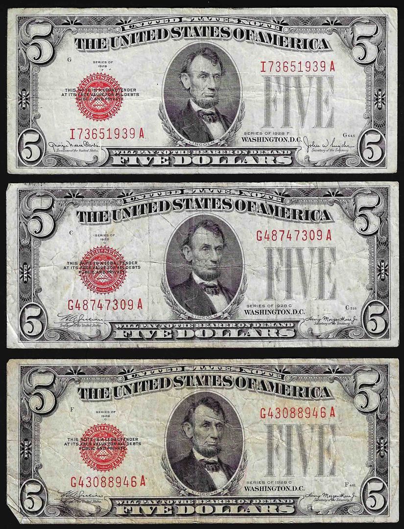 One Lot of (3) 1928 $5 Legal Tender Notes.