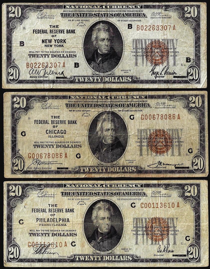 One Lot of (3) 1929 $20 Federal Reserve Bank Notes.
