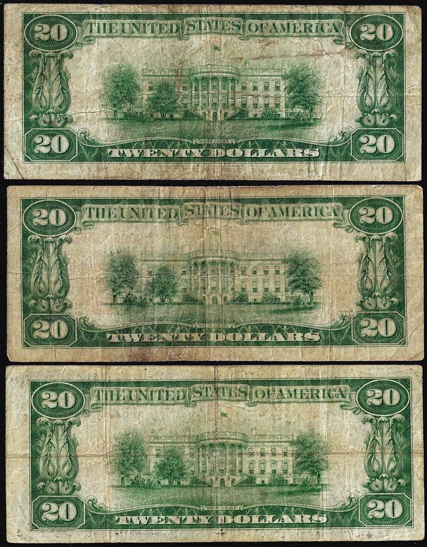One Lot of (3) 1929 $20 Federal Reserve Bank Notes.