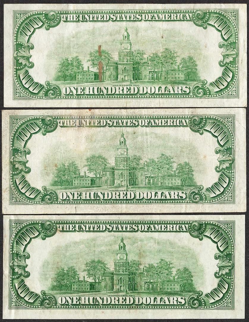 One Lot of (3) 1934 $100 Federal Reserve Notes San Francisco.