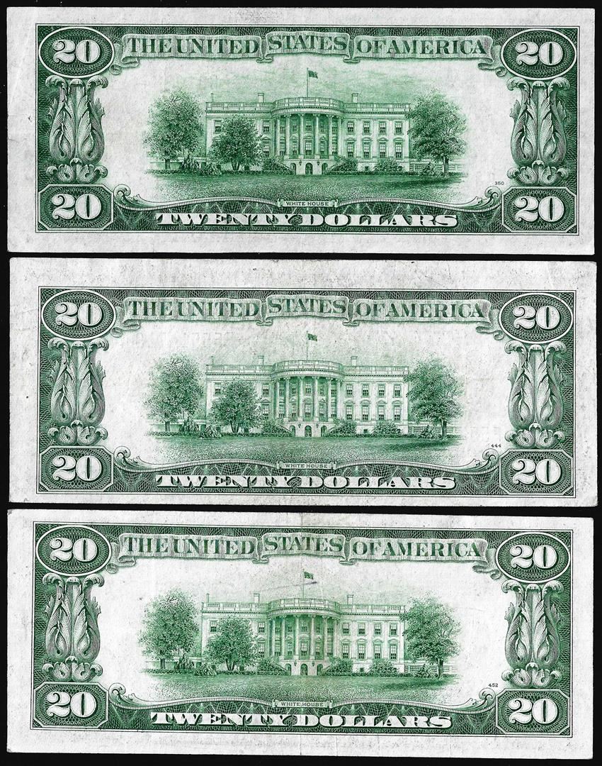 One Lot of (3) 1934/1934B/1934C $20 Federal Reserve Notes.
