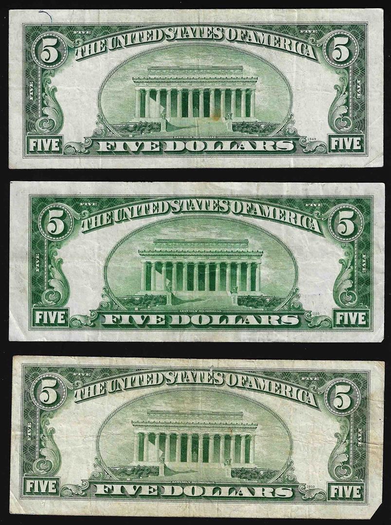 One Lot of (3) 1934 $5 Silver Certificate Notes.