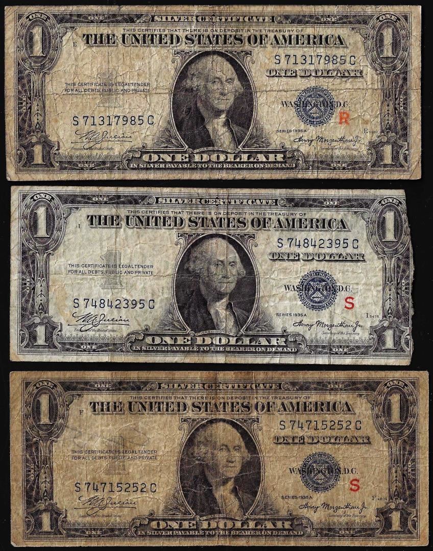 Lot of (3) 1935A $1 Experimental "R" & "S" Silver Certificate Notes