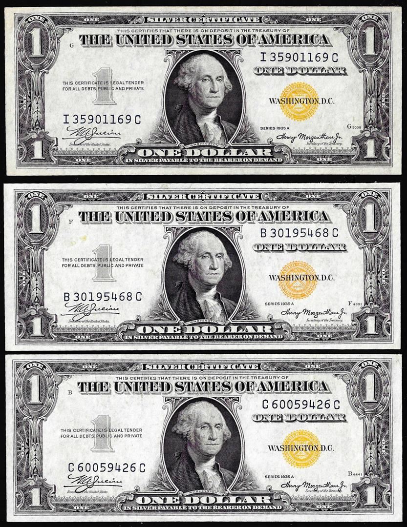 One Lot of (3) 1935A $1 North Africa WWII Emergency Issue Silver Certificate Notes.